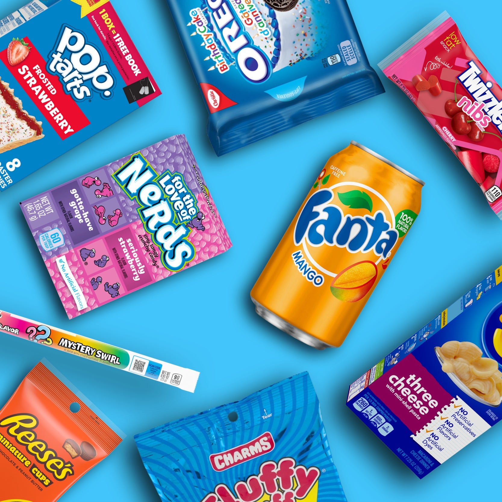 Air Heads White Mystery Cookie Dough Bites Chocolate Chip Charm's Fluffy Stuff Cotton Candy Pastel de cumpleaños Laffy Taffy Cherry Laffy Taffy Blue Raspberry Reese's Nutrageous Bar Reese's Sticks Mantequilla de maní y obleas crujientes Reese's Mantequilla de maní Calendario de Adviento de Navidad Jell-O Gelatina Berry Blue Wonka Nerds Rope Rainbow Lion Barra de maní Mississippi Belle American Style Mix Pancake Herr's Scorchin Hot Curls Carolina Reaper Small Fanta Grape Pop Rocks Popping Candy Strawberry Cola Takis Lollipop Fuego Naruto Shippuden Ultra Ice Tea Gaara Lion Bar Caramel Blond McVities Cracker Crisps Thai Sweet Chilli Reese's Peanut Butter Franken Cup Big Herr's Buffalo Blue Cheese Curls Reese's Christmas Peanut Butter Cup 6 Miniaturas
