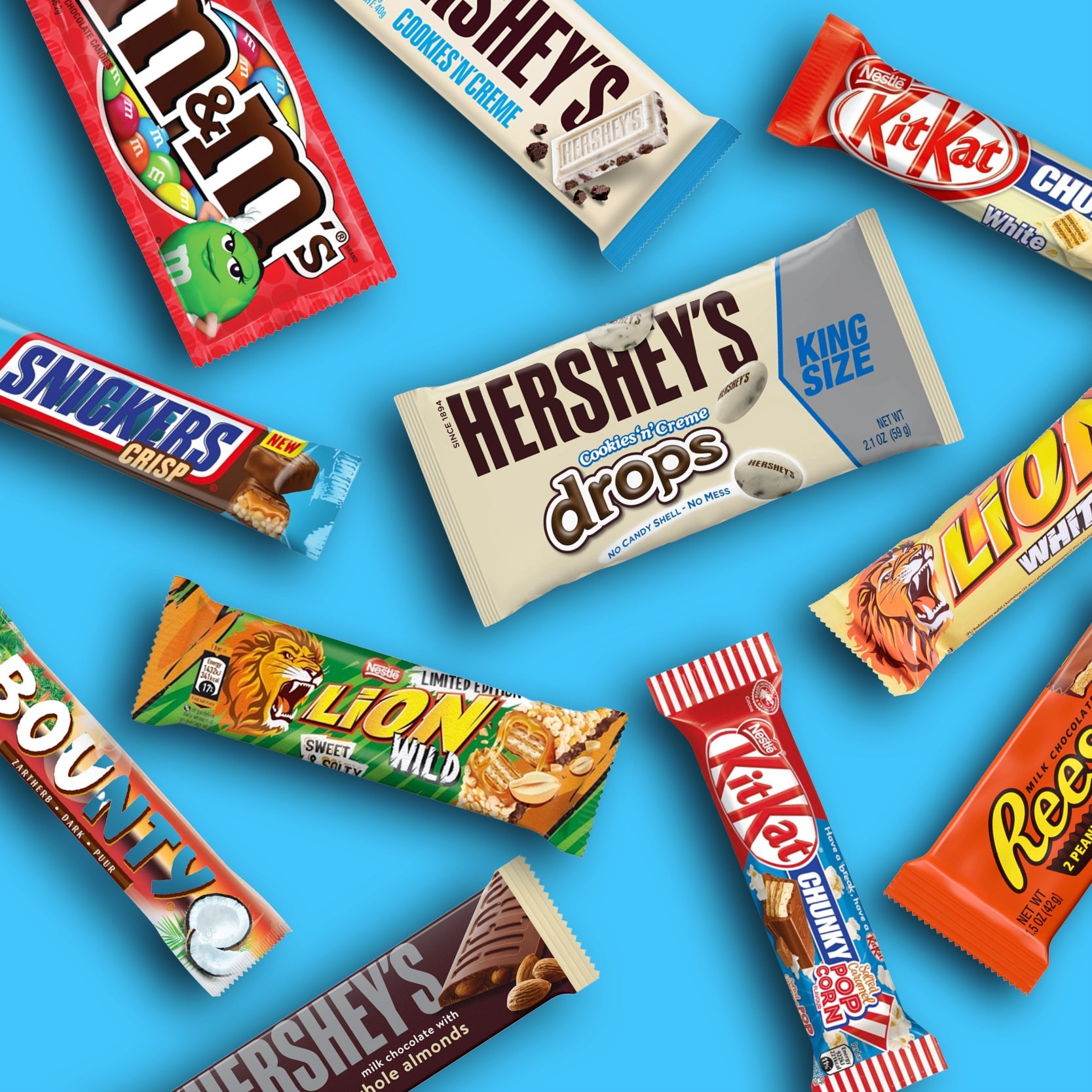 Barra Hershey's Chocolate con leche y almendras Reese's Nutrageous Bar Reese's Peanut Butter Chocolate con leche Tree Lion Bar Peanut Pocky Cookies & Cream Milka Oreo Bar Quick Milk Magic Sipper Chocolate Lion Bar Caramel Blond Reese's Peanut Butter Franken Cup Big Reese's Christmas Peanut Butter Cup 6 Miniaturas Reese's Peanut Butter Galleta de caramelo de chocolate Twix de árbol de chocolate blanco
